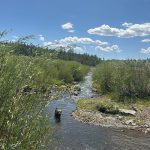 Wet high elevation meadow with the west fork of Black River running through it. Willow community streamside. Fireflies were found in the "green zone" in and near willows and sitting on green herbaceous vegetation in association with the River course. Species of plants along with the common stream-side willow included: Few seed sedge (Carex oligosperma) Stinging nettle (Urtica dioica) Common Evening Primrose (Oenothera biennis), Bigelow's Sneezeweed (Helenium bigelovii). Side channels were dry - area in the Green zone where fireflies were active still had damp soil. They did not utilize areas of vegetation that were dry and not green.