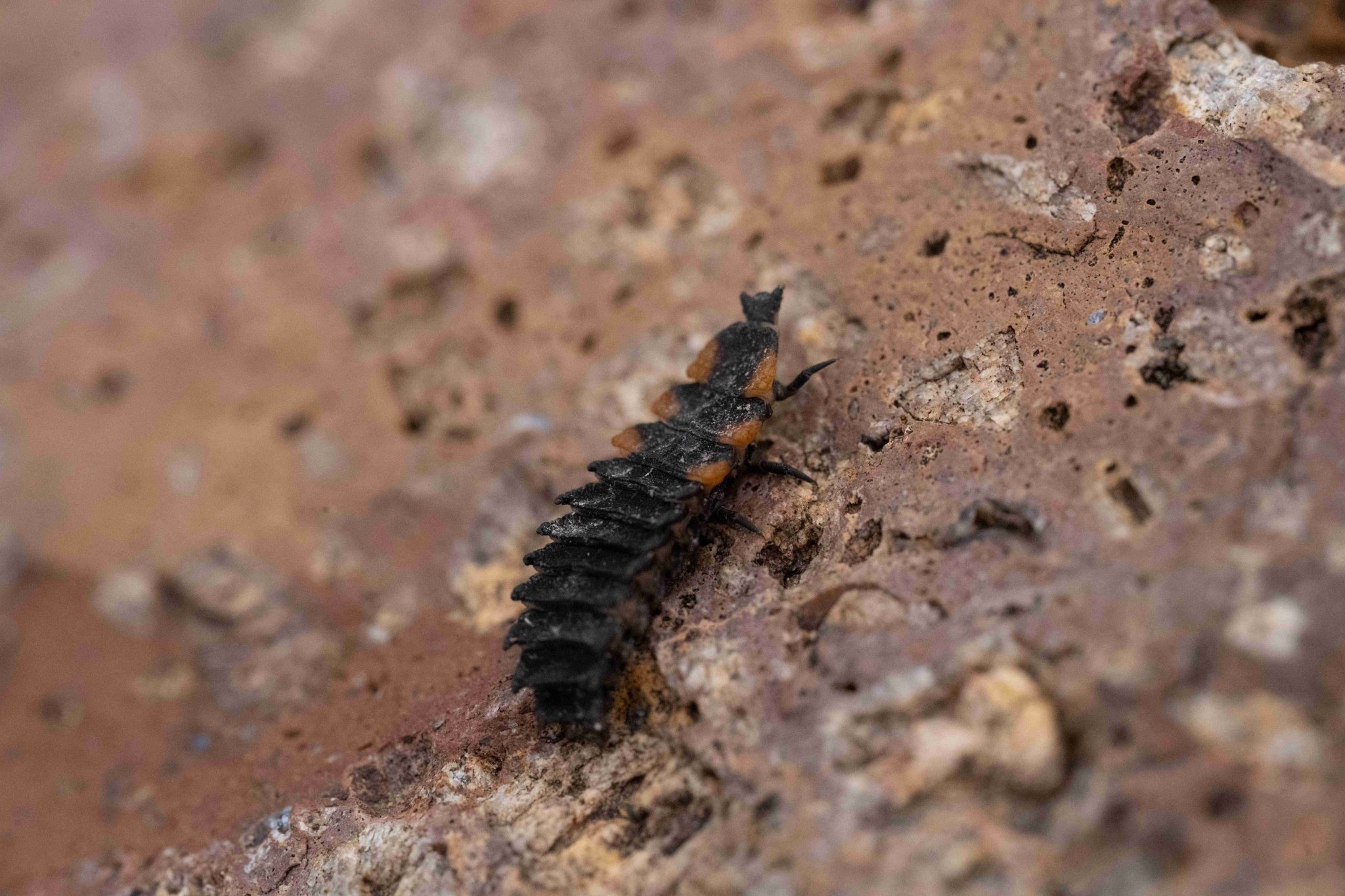 This is actually the larva of a netwing beetle (family Lycidae, likely genus Lycus), which are similar-looking to firefly larvae and in the same superfamily (Elateroidea). They are easily confused.