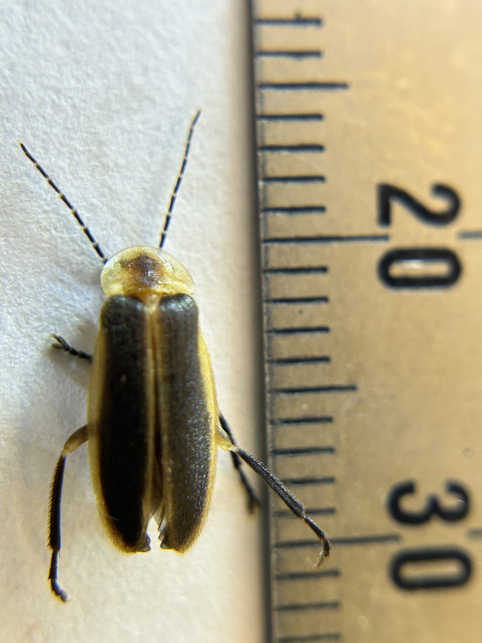I am intrigued by this observation, and while I do see some similarities with Photuris frontalis, the longer flash pattern period and the lack of stigmatiform pits make me reluctant assign P. frontalis as the ID.