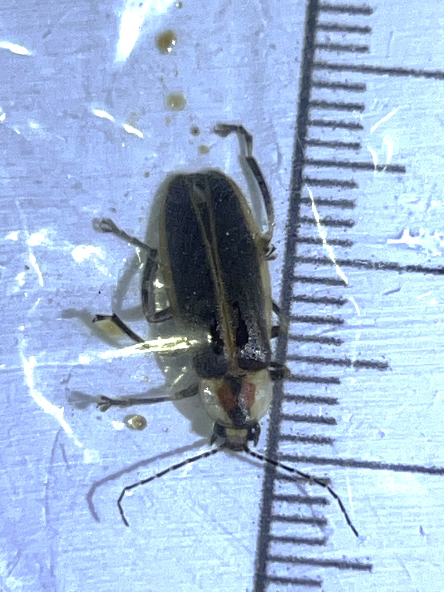 I’m honestly not sure what species this could be, as the Photuris in Illinois haven’t been studied very closely. The 14 mm length and dark colored hind coxae (both helpful cluses) could point toward Photuris versicolor or Photuris tremulans, though early August would be quite late in the season for P. tremulans.